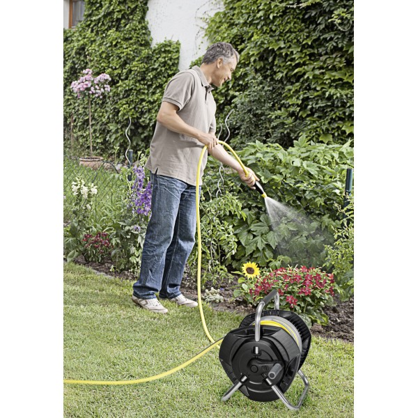 Η έτοιμη για σύνδεση ανέμη λάστιχου HR 4.525 1/2'' διαθέτει ένα στιβαρό πλαίσιο και περιλαμβάνει ένα λάστιχο 25 μέτρων ποιότητας PrimoFlex® 1/2''. Η ανέμη μπορεί να χρησιμοποιηθεί για πότισμα με σταθερό ή κινητό τρόπο, χάρη στη δυνατότητα πρακτικής αποθήκευσης λάστιχου. Είναι ιδιαίτερα κατάλληλο για μικρούς και μεσαίους κήπους. Το ιδανικό πλάτος της ανέμης λάστιχου συνεπάγεται ότι μπορεί να αποθηκευτεί ακόμη και σε ανώμαλο έδαφος, εξασφαλίζοντας μεγάλη άνεση και στο χειριστή. Το με ακρίβεια μετρημένο διάστημα μεταξύ του λάστιχου και των ποδιών σημαίνει ότι μπορεί να τυλίγεται και να ξετυλίγεται ομαλά. Περίληψη λεπτομερειών εξοπλισμού: λάστιχο 1/2'' 25 μέτρων, ψεκαστήρας "Plus" , 4 σύνδεσμοι λάστιχου γενικής χρήσης (3 χωρίς και 1 με Aqua Stop) και 1 αντάπτορας βρύσης G 3/4 με μειωτήρα G 1/2. Οι ανέμες λάστιχου της Kärcher είναι συμβατές με όλα τα διαθέσιμα συστήματα click.