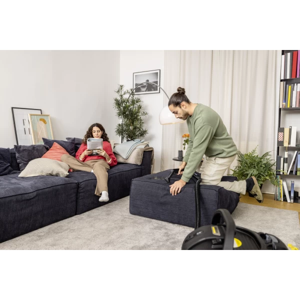 Βαθύς καθαρισμός σε συνδυασμό με εργονομική σχεδίαση και πολυλειτουργικότητα: η SE 4 με τον ελκυστικό σχεδιασμό της, εξασφαλίζει υγιεινό καθαρισμό μέχρι τις ίνες πολλών υφασμάτινων επιφανειών. Η δοκιμασμένη τεχνολογία ψεκασμού αναρρόφησης από την Kärcher παρέχει τα καλύτερα αποτελέσματα καθαρισμού: το καθαρό νερό της βρύσης και το καθαριστικό χαλιών Kärcher RM 519 ψεκάζονται βαθιά στις υφασμάτινες ίνες υπό πίεση και στη συνέχεια αναρροφώνται μαζί με τους ρύπους που έχουν μαλακώσει- ιδανική για οικογένειες, αλλεργικούς και νοικοκυριά με κατοικίδια ζώα. Η συσκευή είναι ένα πολυλειτουργικό προϊόν 3 σε 1, που λειτουργεί επίσης ως πλήρως εξοπλισμένη σκούπα υγρής και ξηρής αναρρόφησης. Η μεγάλη ημιδιαφανής δεξαμενή καθαρού νερού χωρητικότητας 4 λίτρων είναι ανθεκτική στα χτυπήματα και μπορεί να αφαιρεθεί, καθιστώντας εύκολη την πλήρωση και το άδειασμά της. Το βρώμικο νερό που αναρροφάται συλλέγεται στο δοχείο. Η λαβή μεταφοράς 3 σε 1 έχει σχεδιαστεί για να καθιστά τη μεταφορά, το άνοιγμα, το κλείσιμο και το άδειασμα του δοχείου χωρίς προβλήματα. Τα παρεχόμενα εξαρτήματα μπορούν να αποθηκευτούν τακτοποιημένα στην ίδια τη συσκευή. Η συσκευή καθαρίζεται εύκολα μετά τη χρήση, ώστε να εξασφαλίζεται μεγάλη διάρκεια ζωής του προϊόντος.