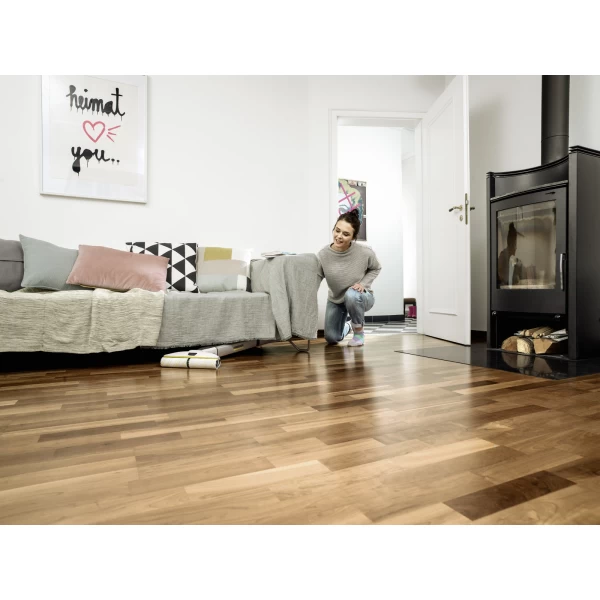 Αφαιρεί λεκέδες και πιτσιλιές μέχρι τις άκρες - χωρίς να χρειάζεται κουβάς ή κουραστικό τρίψιμο. Δεν είναι δυνατόν; Σκεφτείτε το ξανά! Η ασύρματη σφουγγαρίστρα EWM 2 με τις δύο δεξαμενές της το κάνει αυτό εφικτό - και τις συμβατικές σφουγγαρίστρες περιττές. Οι περιστρεφόμενοι κύλινδροι διαβρέχονται συνεχώς με φρέσκο νερό, ενώ η συλλεχθείσα βρωμιά καταλήγει στη δεξαμενή λυμάτων. Η συσκευή αφήνει τα δάπεδα έως και 20% καθαρότερα από τις συμβατικές σφουγγαρίστρες*. Χάρη στο λεπτό σχήμα του και την ευέλικτη περιστρεφόμενη άρθρωση, η EWM 2 όχι μόνο φτάνει εύκολα κάτω από τα έπιπλα, αλλά εξοικονομεί και αποθηκευτικό χώρο. Ο χρόνος στεγνώματος του δαπέδου είναι μόνο περίπου δύο λεπτά, καθιστώντας το απόλυτα κατάλληλο για χρήση σε όλους τους τύπους σκληρών δαπέδων (π.χ. πλακάκια, παρκέ, laminate, PVC και βινύλιο). Η ισχυρή μπαταρία ιόντων λιθίου έχει χρόνο λειτουργίας περίπου 20 λεπτά. Αυτό σου επιτρέπει να καθαρίσεις με τη συσκευή έως και 60 m² δαπέδου.